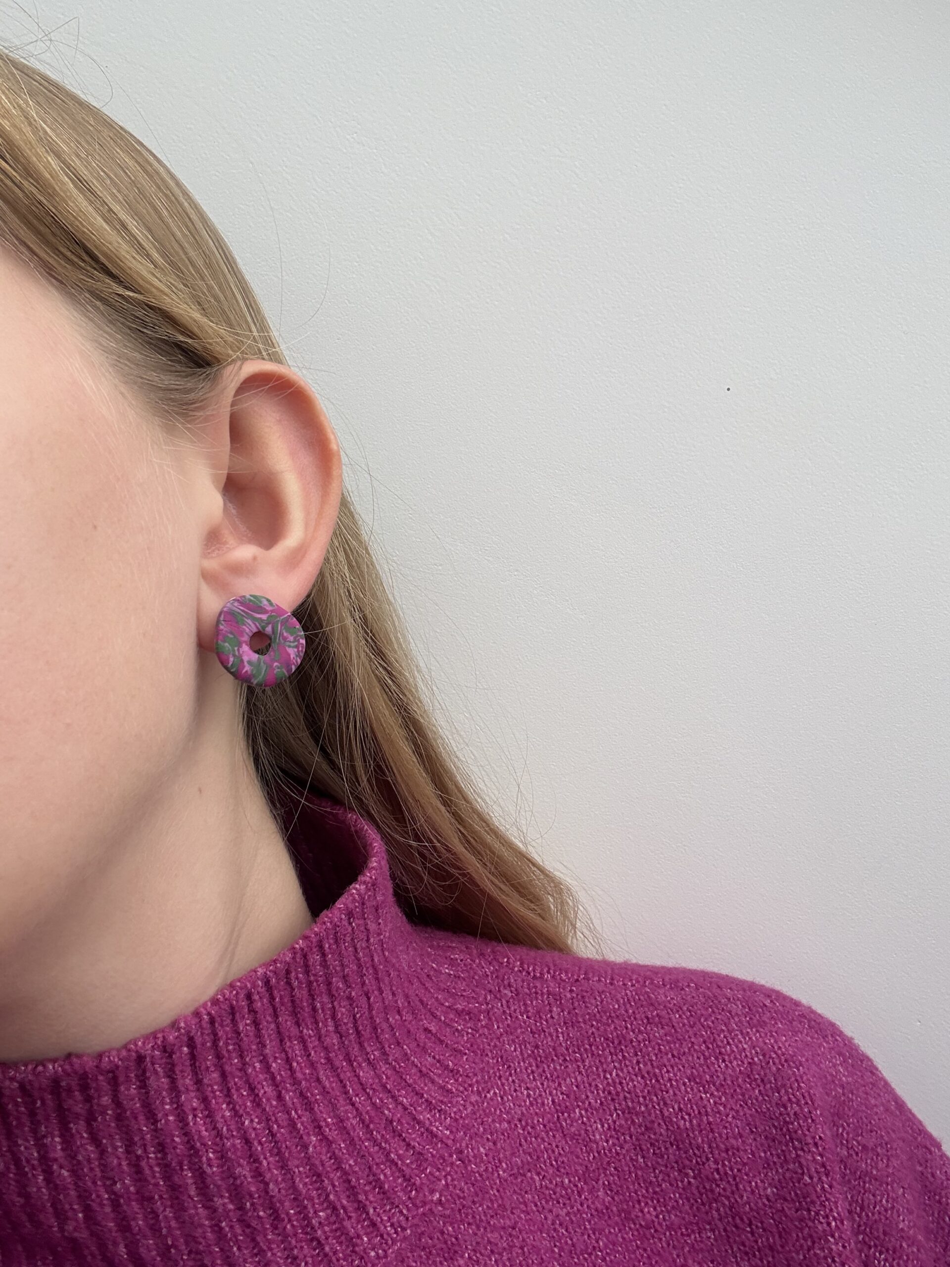 Ręcznie wykonane kolczyki o wysokości 2,2 cm, które są definicją nowoczesnej odwagi i koloru. Bardzo lekkie, a dzięki zastosowaniu sztyftów ze stali chirurgicznej są bezpieczne dla wrażliwych uszu. To idealny wybór dla osób, które nie boją się szalonych połączeń kolorów. Świetnie podkreślają zarówno eleganckie, jak i codzienne stylizacje.
