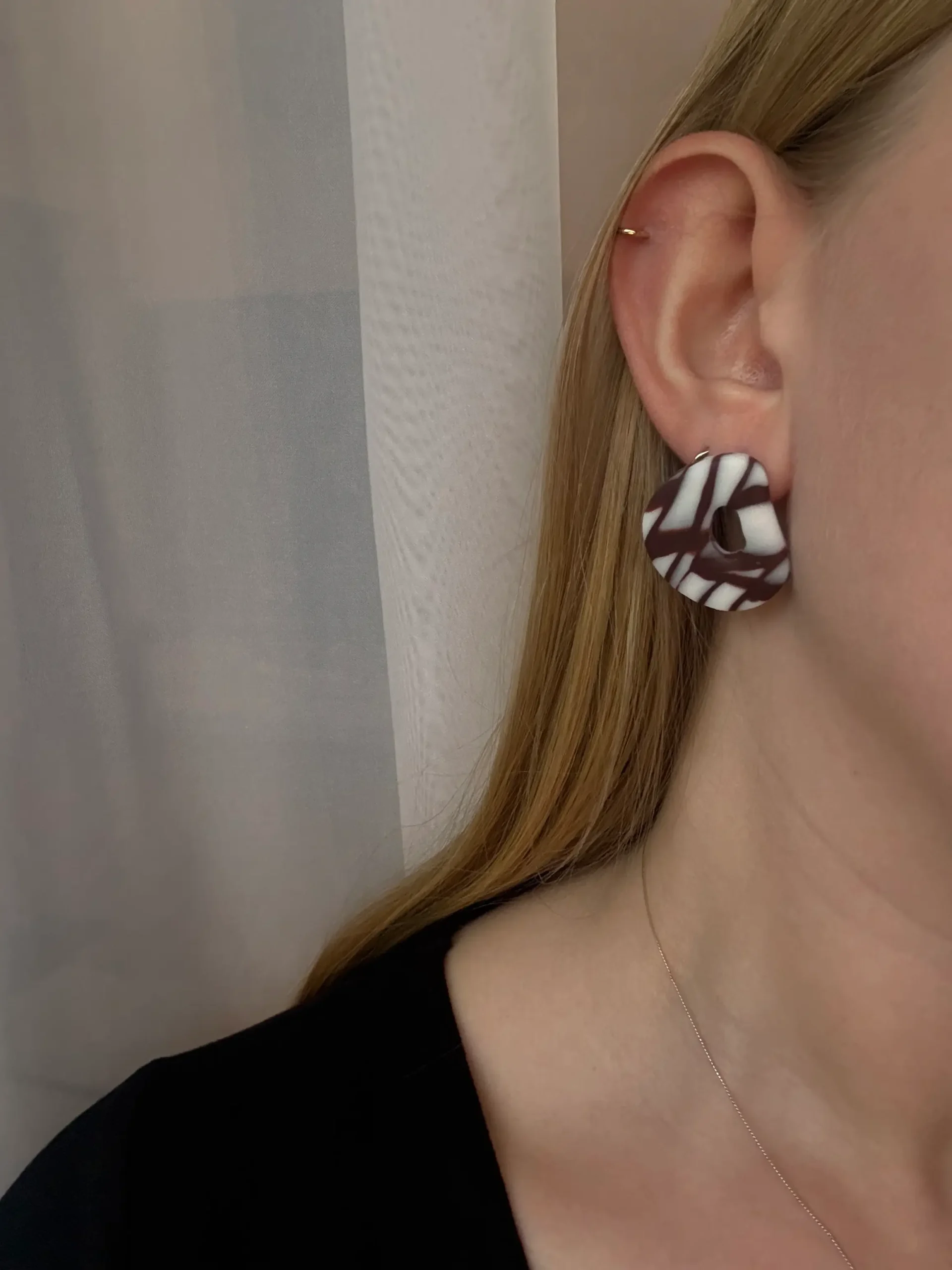 Ręcznie wykonane kolczyki o całkowitej wysokości 3 cm, które są definicją nowoczesnej odwagi i koloru. Bardzo lekkie, a dzięki zastosowaniu sztyftów ze stali chirurgicznej są bezpieczne dla wrażliwych uszu. To idealny wybór dla osób, które nie boją się szalonych połączeń kolorów.